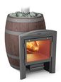 Уникальная форма корпуса печи «Баррель» в виде бондарной бочки не имеет аналогов. Печь-бочка органично и естественно впишется в любой банный интерьер. Внешний кожух из конструкционной стали, клепки и фасонные элементы окрашены кремнеорганической краской двух цветов, имитирующей натуральную древесную текстуру палисандра.
